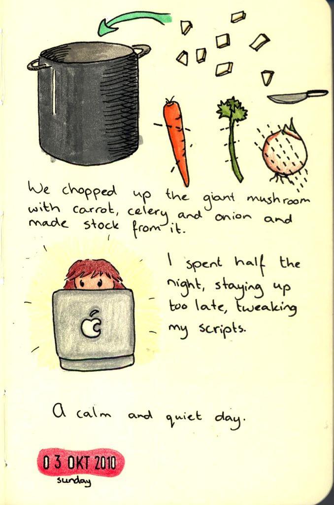 We chopped up the giant mushroom with carrot, celery and onion and made stock from it.