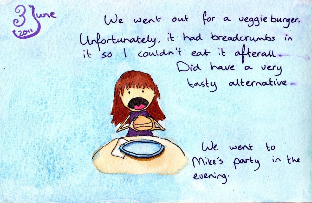 We went out for a veggie-burger. Unfortunately, it had breadcrumbs in it so I couldn’t eat it afterall. Did have a very tasty alternative.