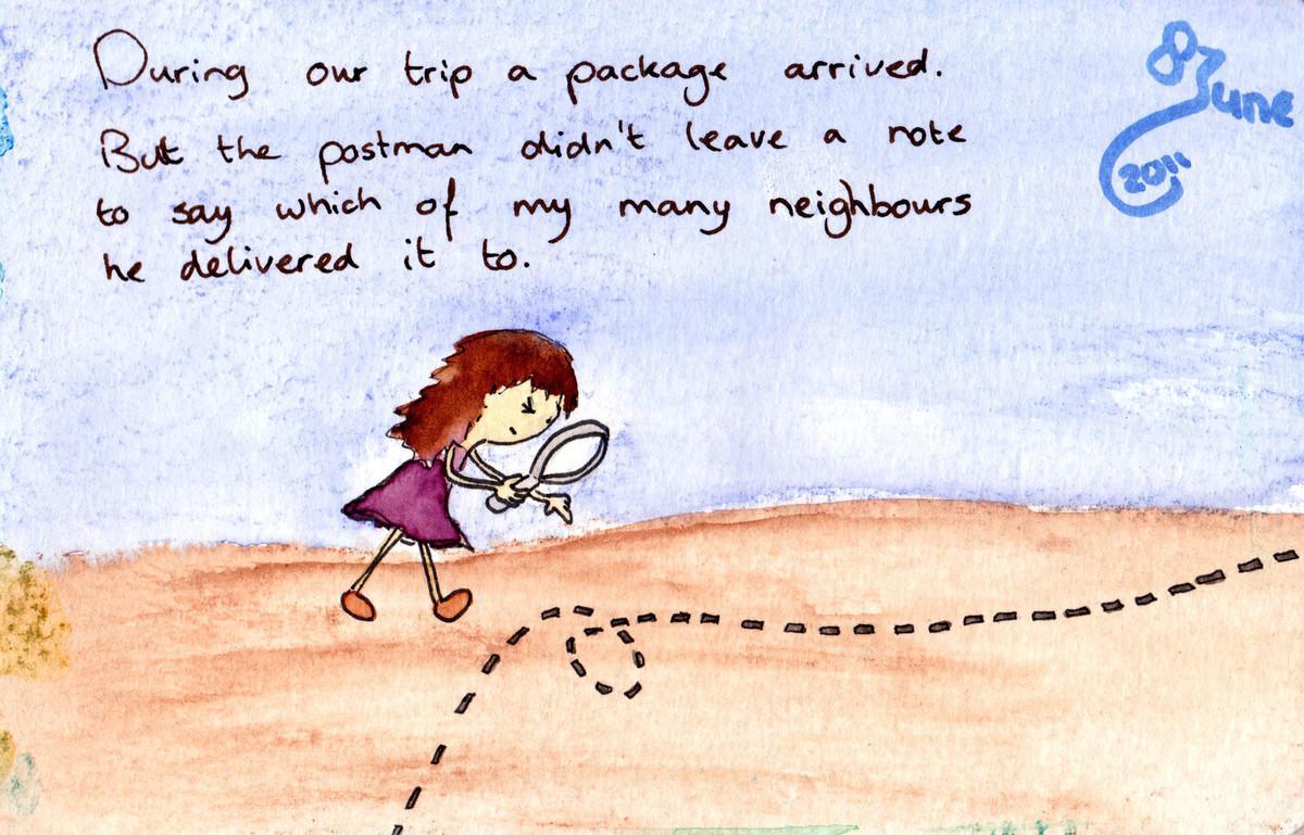 During our trip a package arrived. But the postman didn’t leave a note to say which of my many neighbours he delivered it to.