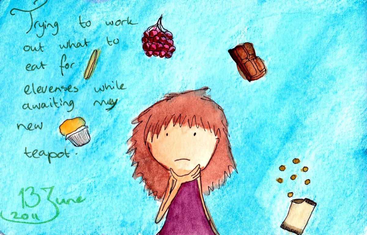 2011.06.13 Date 2011-06-13 00:46 Tags chocolate / cupcake / grapes / snacks Comments Trying to work out what to eat for elevenses while awaiting my new teapot.