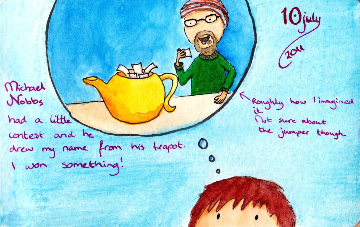 Michael Nobbs had a little contest and he drew my name from a his teapot. I won something!