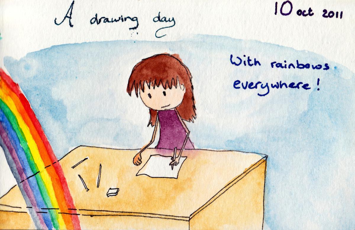 2011.10.10 Date 2011-10-10 14:39 Tags desk / drawing / rainbow Comments A drawing day. With rainbows everywhere!