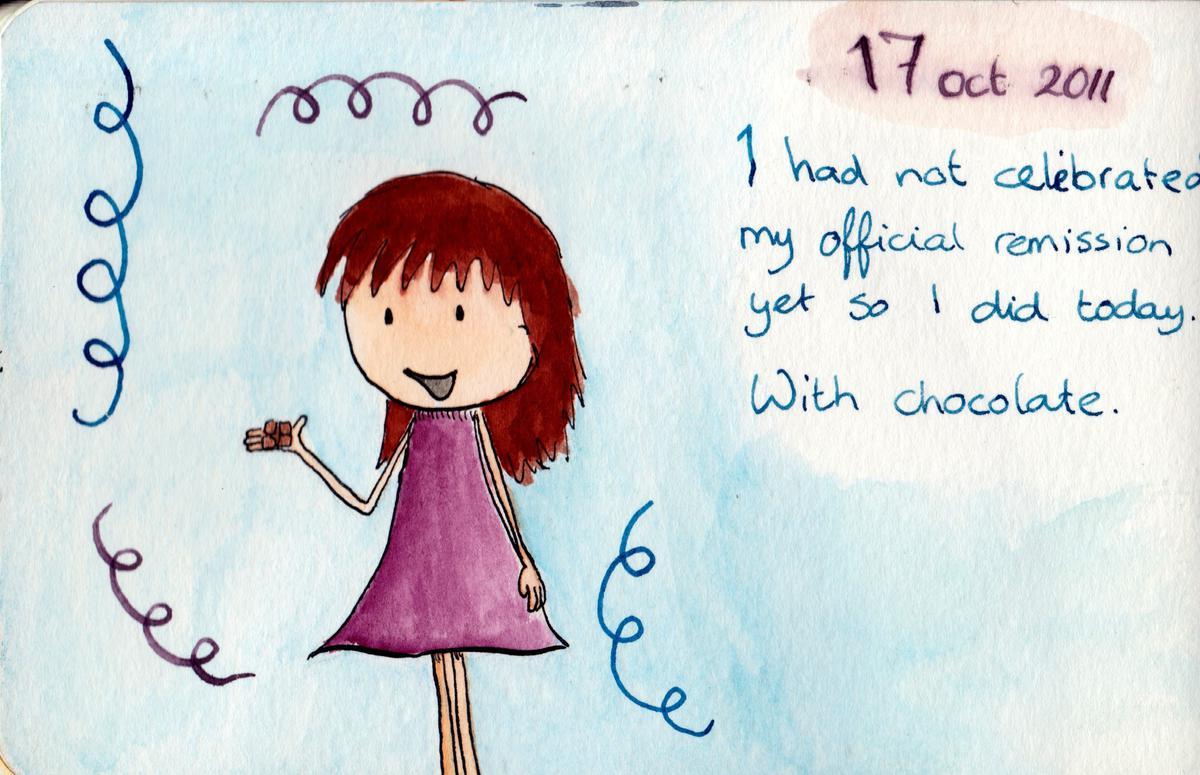 2011.10.17 Date 2011-10-17 13:39 Tags celebrate / chocolate / remission Comments I had not celebrated my official remission yet so I did today. With chocolate.