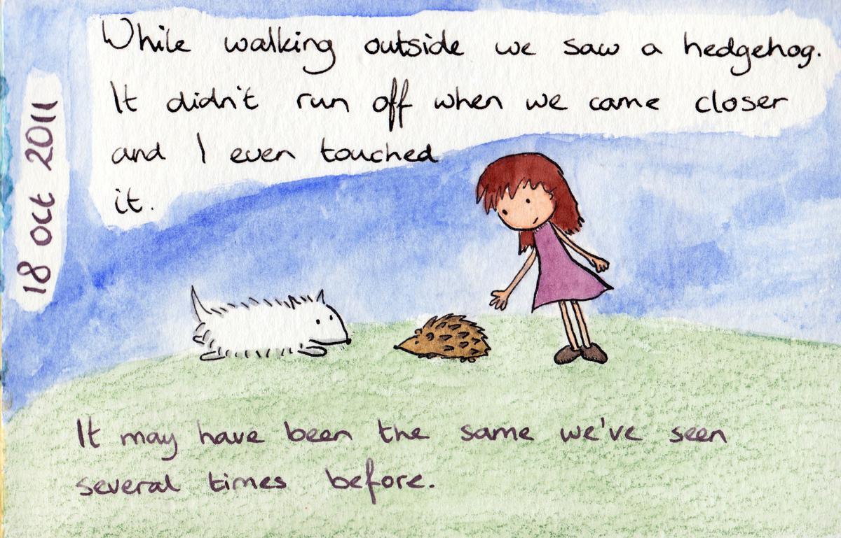 While walking outside we saw a hedgehog. It didn’t run off when we came closer and I even touched it.