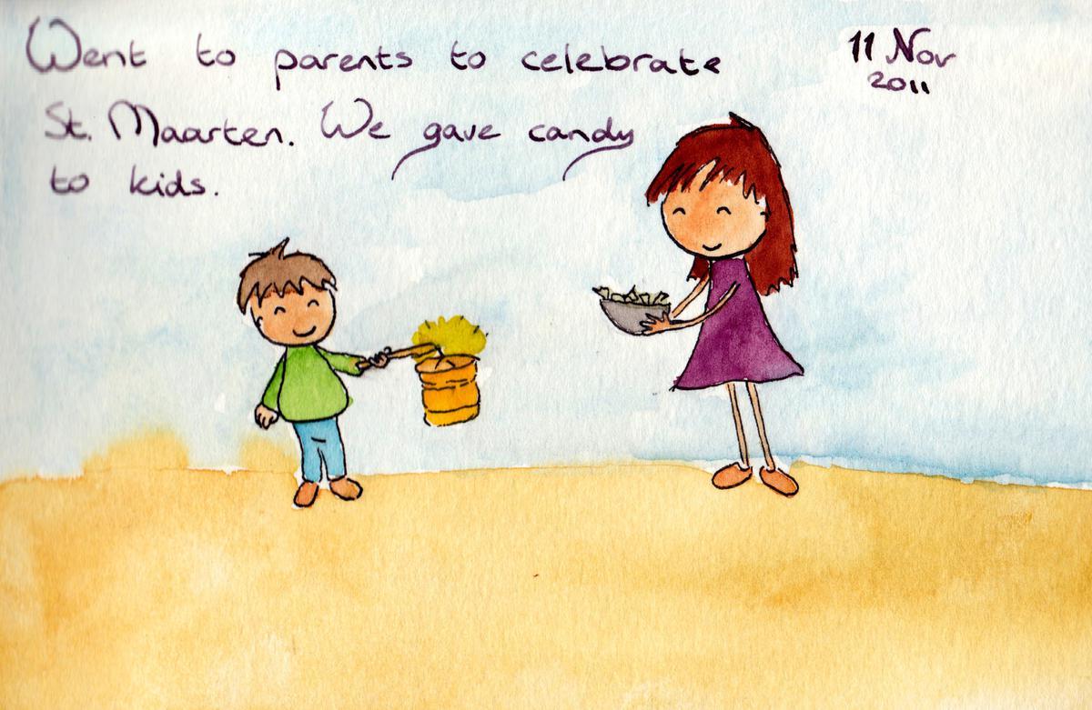 2011.11.11 Date 2011-11-11 11:57 Tags candy / st. maarten Comments Went to parents to celebrate St. Maarten. We gave candy to kids.