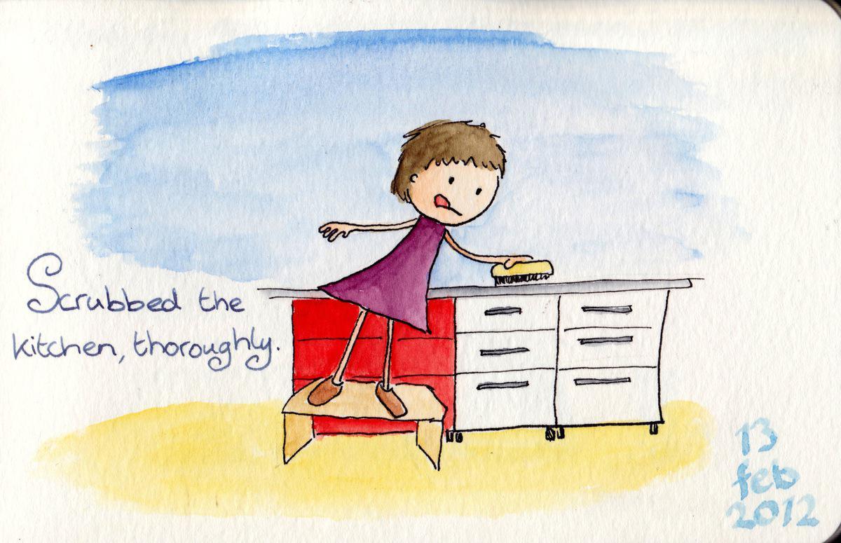 Scrubbed the kitchen, thoroughly.