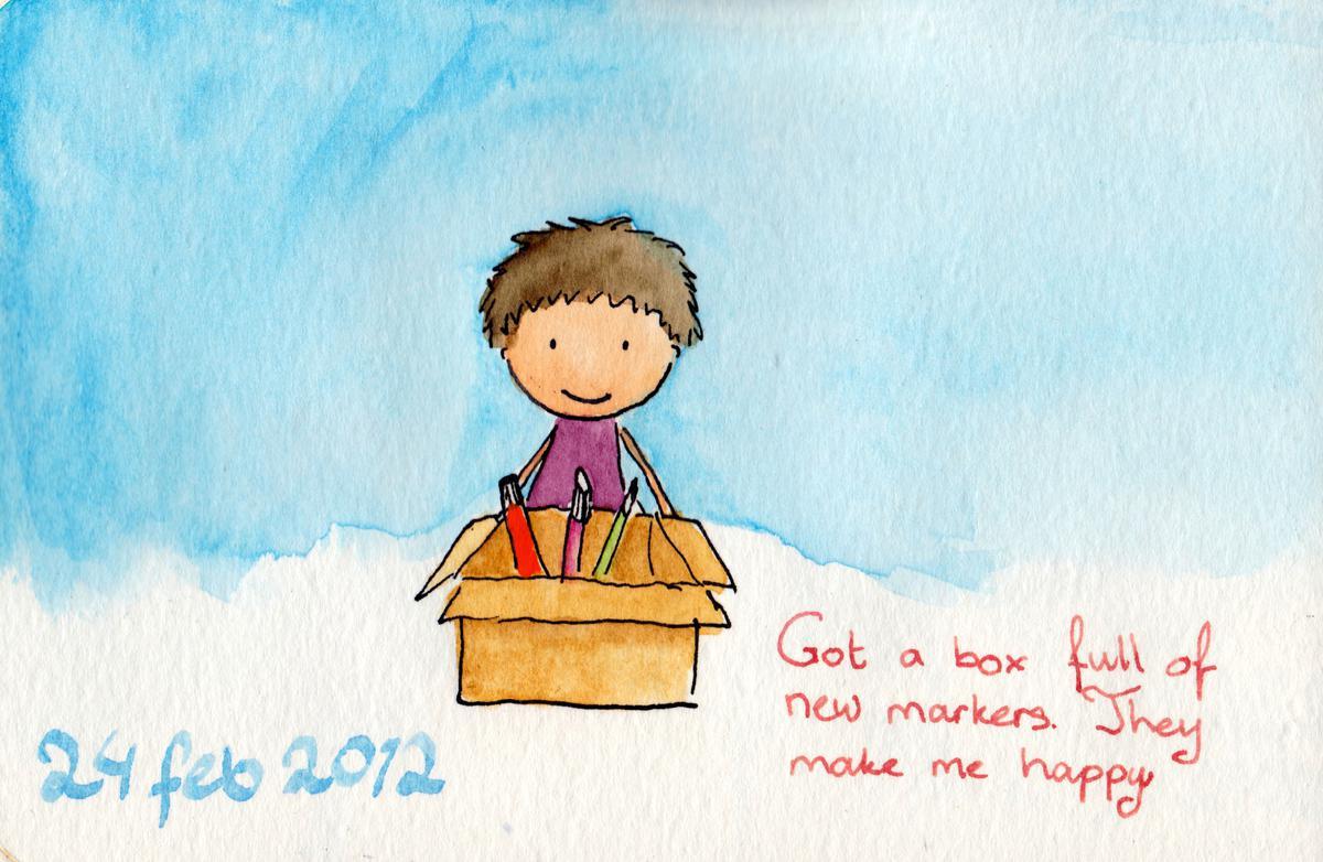 2012.02.24 Date 2012-02-24 00:02 Tags box / markers Comments Got a box full of new markers. They make me happy.