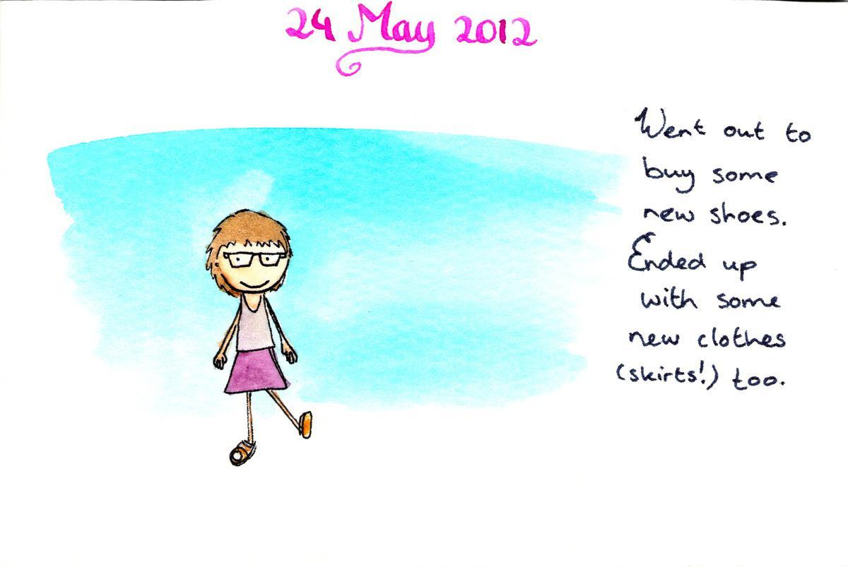 2012.05.24 Date 2012-05-24 09:33 Tags clothes / shoes / skirt Comments Went out to buy some new shoes. Ended up with some new clothes (skirts!) too.
