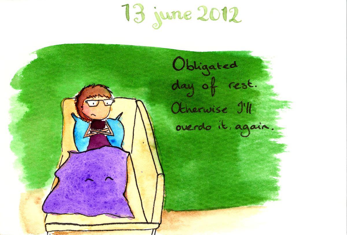 2012.06.13 Date 2013-12-13 18:00 Tags resting / sofa_day Comments Obligated day of rest. Otherwise I’ll overdo it again.