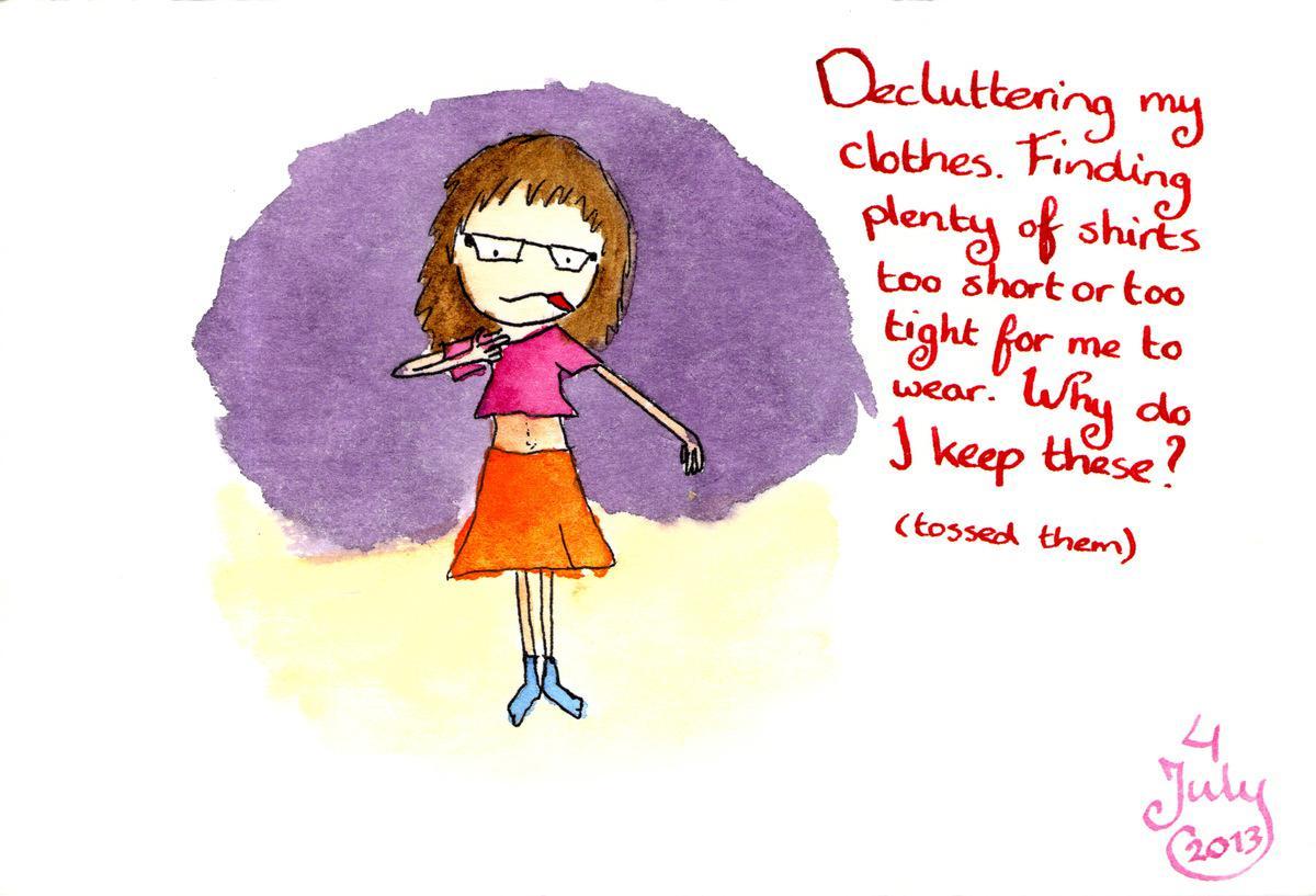 2013.07.04 Date 2014-01-04 18:00 Tags clothes / declutter / shirt / tight Comments Decluttering my clothes. Finding plenty of shirts too short or too tight for me to wear. Why do I keep these? (tossed them)