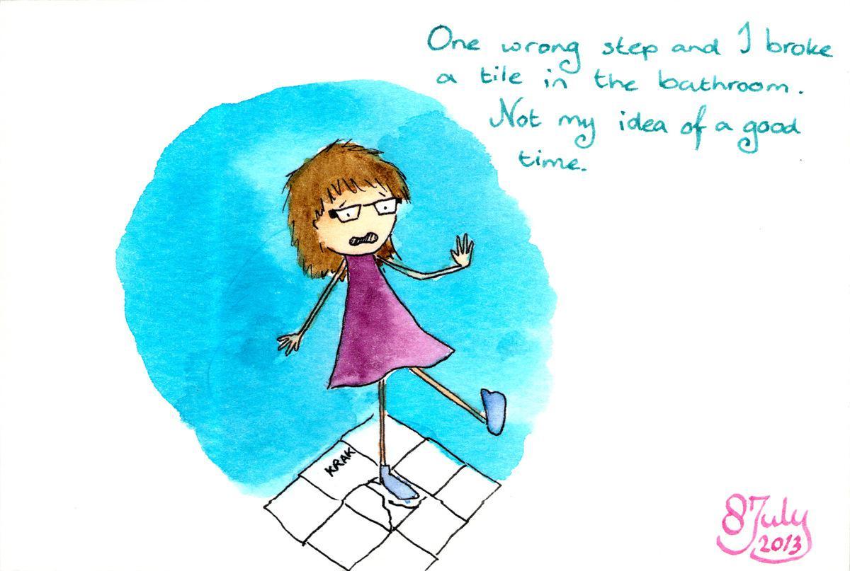 2013.07.08 Date 2014-01-08 18:00 Tags bathroom / blue / broke / tile Comments One wrong step and I broke a tile in the bathroom. Not my idea of a good time.